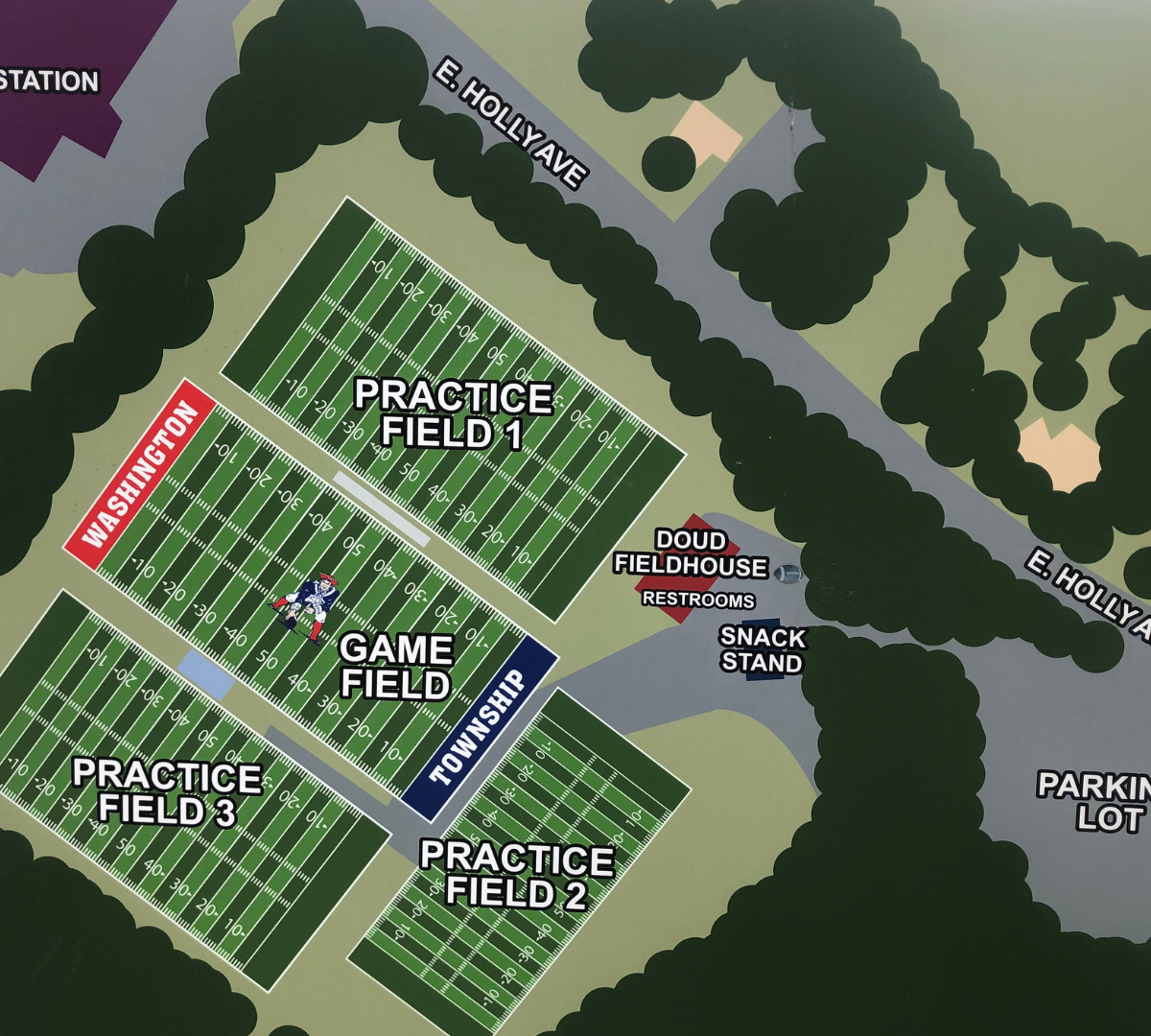 Two polymetal signs. 3x5 sign at entrance of football field on East Holly Ave. and 48 inch sign at perimeter of field ( includes Gold sponsor exposure). Business is announced at our home games , coin toss at home games, link goes on our web-site, marketing material handed out at home games. Tax-deductible donation. $750 annual renewal ( after 5 years $500 renewal)