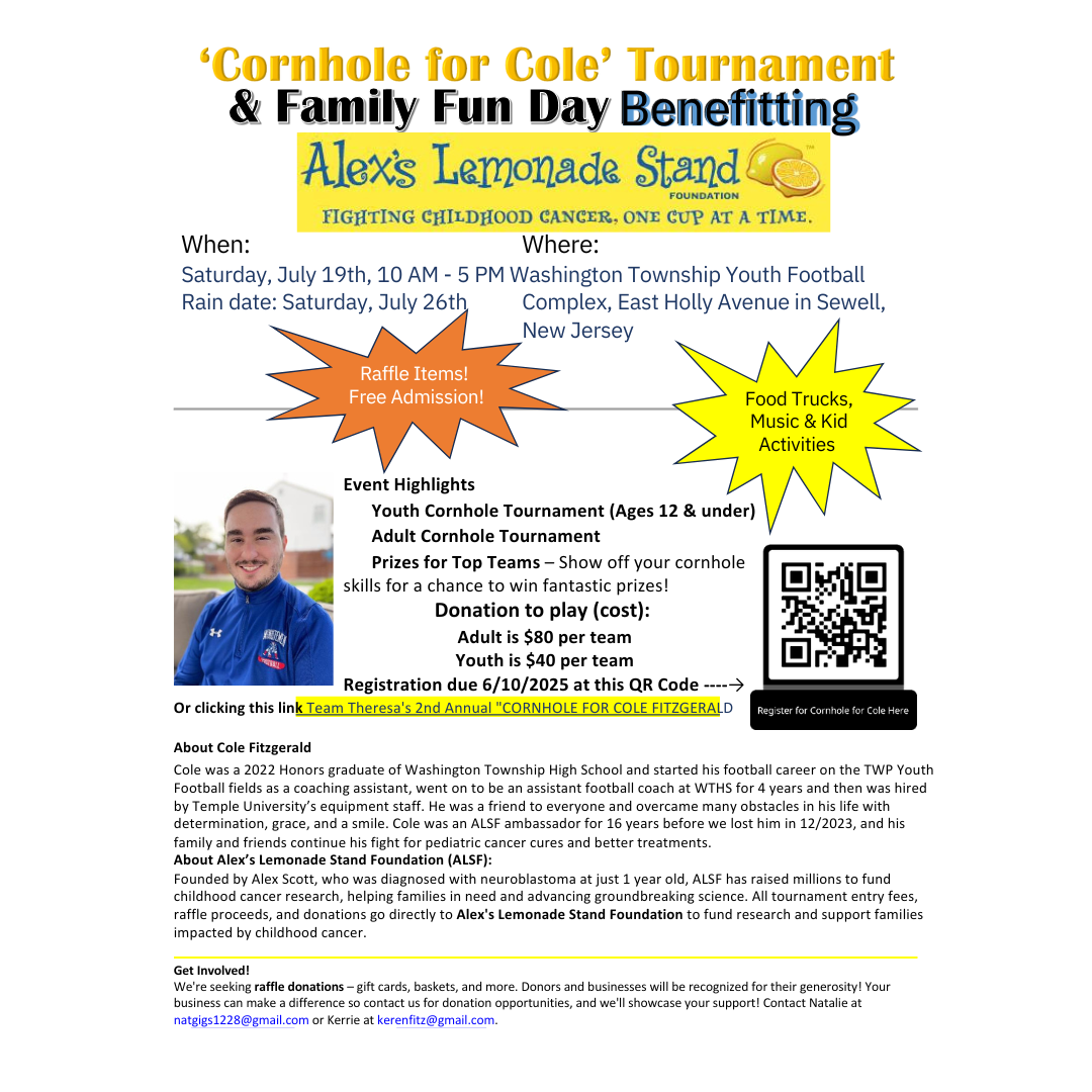 Learn MoreAny incoming Freshman student in the Washington Township School District interested in playing football in the fall, please fill out the contact information! Due to the closing of school, we will not be able to meet in person until restrictions are uplifted! I'm looking forward to the Fall and getting a chance to work with the Class of 2025!